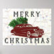 Um design de Natal estilo vintage que tem um carro clássico carregando uma Árvore de Natal em cima com um mapa atrás. Esta saudação retrógrada de viagem de férias será divertida nesta temporada de férias.