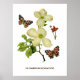 Trendy vintage tematizou poster com flores de madeira de cachorro em um galho com borboletas.