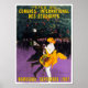 Reprodução restaurada e melhorada digitalmente de uma poster publicitária para um partido num congresso internacional de estudantes em Bordéus, em 1907, mostrando a uma mulher a espremer uvas num copo de vinho enquanto a sua escolta canta e dança. Imperfeições removidas. Cores corrigidas. Imagem cortesia da Biblioteca do Congresso.
