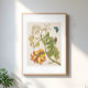 Vintage Orange fruit on a plant with bugs and butterflies wall art poster illustration. Minimalist botanical, floral modern vibe.