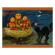 Halloween Pumpkins Jack-O-Lantern Black Cat - Esta ilustração antiga de um gato preto e abóboras de halloween fazem um presente assustador de Halloween. A imagem veio de um antigo cartão postal do Dia das Bruxas. Esta placa de Halloween assustadora apresenta três abóboras engraçadas de jack-o-lanterna. As abóboras esculpidas estão sentadas numa grande melancia, numa noite de Halloween com um gato preto. Há uma lua crescente no fundo, estabelecendo o clima para uma festa assustadora de Halloween. O gato preto aparece enquanto vê as abóboras.