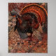Esta pintura antiga em suas cores laranja e marrom realmente dá a sensação de queda. O peru quase se mistura ao fundo. Quando você olha para esta pintura você pode quase sentir as folhas em rustação enquanto você pisa na floresta e espia este pássaro elegante. Compartilhe suas saudações de Ação de Graças com esta bela ilustração da turquia
