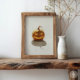 Essa arte de parede minimalista apresenta uma solitária, rústica lanterna-jack-o-o-lanterna, com um sorriso malicioso, lançando uma sutil sombra contra um fundo limpo e esbranquiçado. A simples e desordenada design traz o foco à textura natural e à expressão lúdica da abóbora esculpida, fazer-a uma adição subestimada, mas encantadora, ao Halloween e à decoração do tema da queda. O equilíbrio entre o sorriso brilhante da abóbora e o seu ambiente mudo oferece uma moderna e serena tomada da iconografia clássica do Halloween.