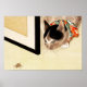 Esta bela vintage poster japonesa para donos de gatos mostra um gato bonito, marrom e branco com olhos verdes sábios caçando uma insuspeitável dentro de aranha. A pintura mostra-o a olhar intensamente para a aranha por trás de uma porta decorada de tela quando ele está prestes a bater! O gato de casa amperado veste um lindo cachecol vermelho, azul e verde com padrão de borboleta ao redor de seu pescoço. A pintura original é do artista Oide Makoto (Toko), 1841-1905. O poster faria um excelente de lar, novo lar ou novo presente para os amantes da arte de gatos vintage.