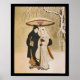 Vintage trabalho de arte japonês para sala de estar ou escritório. Mulher e homem andando com guarda-chuva no show.
