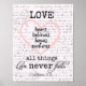 Vintage Love Bíblia Verse Posters e Impressões. Tela preta e branca com belíssima escrita manual, com o verso bíblia sobre o amor dos Corinthians. O amor suporta, acredita, esperanças, tudo. O Amor Nunca Falha. Veja mais na nossa loja, Christian Quotes. Link abaixo: