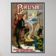 Ilustração Vintage poster de magia com Edwin H. Brush (1873-1967). Este anúncio de 1915 tem um tema de Halloween com uma bruxa voadora sobre um vassoura, morcegos e um gato negro. Dois demônios estão atrás de Brush, o Excelente ou Bruxelas, Rei dos Assistentes, enquanto ele mistura poções que estão balançando com fumaça. Um dragão verde está no chão.