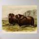 Uma ilustração vintage de dois muçulmanos que se encontram nas pradarias da selva americana. A boi-de-galinha é um mamífero ártico que recebe seu nome do odor emitido pelo macho para atrair fêmeas durante a época de acasalamento. A ilustração de John James Audubon foi publicada em 1851.