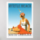 Um poster retrô que nunca foi até agora. Um refazer criativo de um velho poster que deveria ter sido. Myrtle Beach no estilo retrô da era da arte deco. Cor brilhante com uma mulher na praia sob um céu azul.