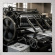 Um gráfico de alta qualidade de uma prensa retrô, mostrando a beleza mecânica do jornalismo antigo. Este design é perfeito para uma grande variedade de produtos, de roupa a decoração doméstica.