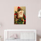 Um poster de natais vintages encantador, com um bom e velho Papai Noel, com brinquedos cercados por ramos de abeto.