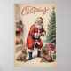 Este Vintage Papai Noel e Cães Feliz Poster de Natal evoca um sentimento de nostalgia e alegria de férias. Apresentando Papai Noel e cachorros reunidos em torno de uma bela árvore de Natal decorada com presentes embaixo, esta poster fará uma adição perfeita ao decoro de férias de sua casa. Espalhe a alegria e o calor do Natal com esta peça de arte clássica.