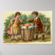 Vintage Páscoa vitoriana com um garoto que oferece um cheio de ovos de Páscoa para sua lata!