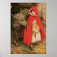 Vintage ilustra a imagem clássica do conto de fadas infantil da famosa ilustradora Jessie Willcox Smith. O Chapeuzinho Vermelho é uma jovem a caminho da casa de sua avó com um cheio de guloseimas cozidas quando o assustador lobo mau a encontra na floresta.