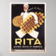 Para a sobremesa escolhida, esta poster sugere a Rita Waffles que pode ser comprada em liso/seco ou enchida/recheada. O artista deste poster de anúncio de safra foi Leon Dupin.<br>() Dupin era um artista francês. Ele foi autodidata, mas gradualmente ganhou um lugar na publicidade quando entrou para Joseph Charles Printing como artista comercial em 1926.
