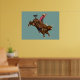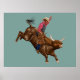 Esta ilustração inspirada na arte ocidental vintage apresenta um vaqueiro rodeio num touro selvagem. Excelente para rodeios e fãs ocidentais country.