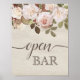 Convide os convidados para pegar a bebida favorita deles no bar com o nosso charmoso cartaz de bar de casamento floral. poster 11x14 apresenta uma borda superior de rosas e folhagem de francês com acrílico pastel, com "aberto" em script de caligrafia e "bar" em letra de bloco. Projetado para combinar com a nossa coleção de casamento de Rosas franceses Vintage.