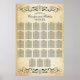 Desenhos decorativos e floreados moldura esta elegante vintage inspirou o poster de assentos de casamento que apresenta um monograma dos nomes da noiva e do noivo e data de casamento, texto de modelo personalizado para números de mesas e nomes de hóspedes. A design inclui elegantes espirais decorativas pretas e florescimento. O fundo de marfim rústico é impresso com uma aparência texturizada de papel pergaminho envelhecido.