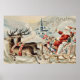 Poster Vintage Santa Claus Christmas Sleigh Reindeer