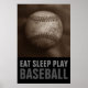 Póster Vintage Sepia Come Sleep Play Baseball