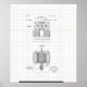 Ilustração Vintage para a patente do Motor Magnético Eletromagnético de Tesla. Sobreposição de desenho em plano de fundo com grade