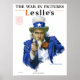 Ilustração venenosa patriotismo cobrir da revista militar de guerra de Leslie, 29 de dezembro de 1917, por James Montgomery Flagg. Esta arte de cobrir da Primeira Guerra Mundial mostra o icônico Tio Sam com um olhar forte apontando uma arma para você e vestindo estrelas patrióticas e listras, o título é A Guerra nas Imagens e o slogan diz "Sai do trono."