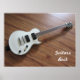 Um legal design com guitarra branca, acentuado por fundo de madeira. Perfeito para uma sala de música, estúdio...
