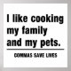 Eu gosto de cozinhar, minha família e meus animais de estimação. Os vírgulas salvam vidas.
