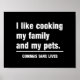 Eu gosto de cozinhar, minha família e meus animais de estimação. Os vírgulas salvam vidas.