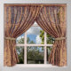 Esta maravilhosa poster de 'visão falsa' é tão grande quanto uma janela real e vai ajudá-lo a sentir que está vivendo na Grã-Bretanha de Tudor ou Elizabetano, ou talvez na época de Jane Austen. As cortinas de semissheer com a design de brocadas de ouro revelam uma cena clássica em inglês além. Uma cabana histórica é rodeada por folhas. Esta linda cena de verão foi capturada em Devon, no sul da Inglaterra. As cortinas da janela têm um design ornamentado e gravatas elegantes, para adicionar uma aparência sumptuosa à cena.
