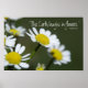 O Impressão Poster da bonito Margarida Branca apresenta uma citação de Ralph Waldo Emerson "A Terra ri em flores." Esta elegante margarida personalizada com o tema poster faz uma ideia única de presente floral para um amante de flores, jardineiro ou florista e apresenta uma fotografia natural de margaridas brancas selvagens num campo verde.
