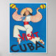 Visite Cuba Retro Viagens vintage com um dançarino com maracas nesta ilustração colorida.