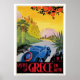 Poster de viagens Vintage Art Deco encorajando visitas à Grécia por automóveis.