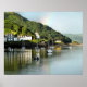Depois de um dia de chuva, o sol finalmente sai e um arco-íris aparece no céu, nesta bela paisagem do porto de Aberdyfi no País de Gales, com barcos na água e algumas casas da vila.