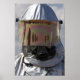 Vista aproximada de um bombeiro em um traje de proximidade com fogo, em Iwakuni.