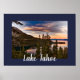 Foto colorida do lago Tahoe, Califórnia - Nevada. Fundo azul escuro com sobreposição de texto branco