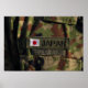Vista aproximada do uniforme dos soldados japoneses da Autodefesa em terra, com camuflagem.