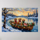 Bring loyal, striking red-gold charm to your holiday season with this beautiful Vizsla Christmas design! This magical scene features three handsome, lean Vizslas sitting attentively in a cozy wooden boat, gently floating on a serene snowy lake at sunset. The boat is beautifully adorned with glowing Christmas string lights and fragrant pine garlands, while the dogs wear festive scarves. They are surrounded by colorful wrapped presents and cheerful holly branches. Soft snowflakes gently fall, and the shimmering reflection of the lights on the water creates a truly magical winter holiday atmosphere. This design is a perfect Christmas gift for any Vizsla owner, dog lover, or admirer of festive and devoted sporting dog art, capturing the serene joy of the season.