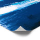 Campos de azul cobalto intenso enmarcan una franja naranja fundida en el centro, mientras que amplios arcos blancos y azules atraviesan la escena como corrientes fluidas. La composición presenta un movimiento dinámico mediante capas de pintura, texturas marcadas y pinceladas seguras que sugieren el diálogo entre el viento y el agua. Los reflejos esmeralda y las gotas blancas verticales aportan contrapunto y profundidad, equilibrando el flujo horizontal. El resultado transmite una presencia moderna y cinética que resulta a la vez enérgica y controlada. Una pieza impactante para salas de estar, oficinas o recibidores contemporáneos.