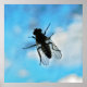Feche a macro tomada de uma pequena mosca-da-casa adolescente empoleirada na janela. Fotografia de Jerry Lambert.