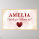 Você casa comigo? Cartaz de Proposta Romântica Coração Vermelho. Faça sua proposta de casamento ser verdadeiramente inesquecível com este elegante e personalizado cartaz "Você Casa Comigo?". Com uma sofisticada moldura dourada, fundo delicado em aquarela e um motivo de coração romântico, este letreiro pode ser personalizado com o nome de sua amada para um toque verdadeiramente pessoal.
