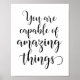 Você é capaz de coisas incríveis, uma citação motivacional excelente para lembrar. Cor totalmente personalizável.