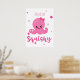 Diga à sua pequena fofa o quanto você a ama com esta impressão de polvo de desenho animado kawaii rosa com tipografia adorável e estrelas.