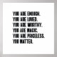 Você já é o suficiente, você é amado, importa o lembrete — Design de Afirmação, Arte Negra e Branca, Impressão de de Poster a Home Decor Family Wall Art. Se este travesseiro o deixar feliz, por favor compartilhe com @Mintandmerit via #Mintandmerit no instagram.