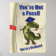 Você está se formando ou conhece alguém que se formou na escola? Temos um cartão bem-humorado perfeito para a ocasião, Você Não é um Fóssil! Você é um Graduado. Nosso design apresenta uma ilustração fofa de um dinossauro T-Rex verde usando um chapéu de formatura azul e segurando um diploma na boca contra um fundo amarelo pergaminho com nossa textura característica e emoldurado à esquerda com um pergaminho com uma fita vermelha. Arranje para essa pessoa especial um cartão que vai fazer cócegas no seu osso do riso.