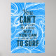 Este é um design de Tipografia inteligente. Você não pode parar as ondas, mas você pode aprender a surf. O design apresenta a inscrição de estilo em ondas azuis encaracoladas.