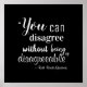 Esta é uma citação excelente do Supremo Tribunal de Justiça Ruth Bader Ginsburg. A nossa design de arte original. "Você pode discordar sem ser desagradável" Você pode personalizar a cor de fundo.