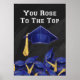 Você conseguiu! A graduação está perto da esquina. Pegue aquela pessoa especial que rosa para o topo com trabalho de duro e estude um cartão ou presente de parabéns com nossa divertida design de um monte de bonés de formatura voando em frente a um fundo preto texturizado com um mais alto voador de boné do que os outros com as palavras em branco no topo, você rosa para o topo. Parabéns na sua realização!