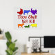 Um arco-íris de animais de exploração com a palavra "Não se deve matar" lembra-nos que, não importa o que chamemos, a carne é comida morto e nós a matamos. A paz NÃO cresce com a violência.
