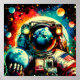 Um astronauta solitário flutua no espaço contra o nítido pano de fundo da Terra e numerosos corpos celestes. Cores vibrantes e detalhes intrincados capturam a vastidão e mistério do universo.